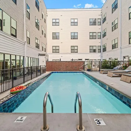Completo com microondas, chaleira elétrica e refrigerador em cozinha totalmente equipada, a propriedade também oferece vestuário, sofá e mesa de trabalho nos quartos. Os hóspedes deste apartamento têm acesso para pátio. O apartamento New! Luxury Apt With Pool, Roof Deck, Fitness Center, King Bed tem 1 camas. Casas de banho têm casa de banho separada, banheira e chuveiro.
